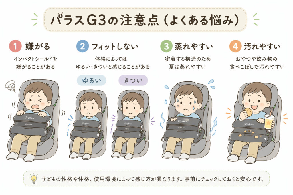 パラスG3の口コミは、「安全性・快適性は高評価。ただしインパクトシールドは合う・合わないが分かれる」というのが結論です。
